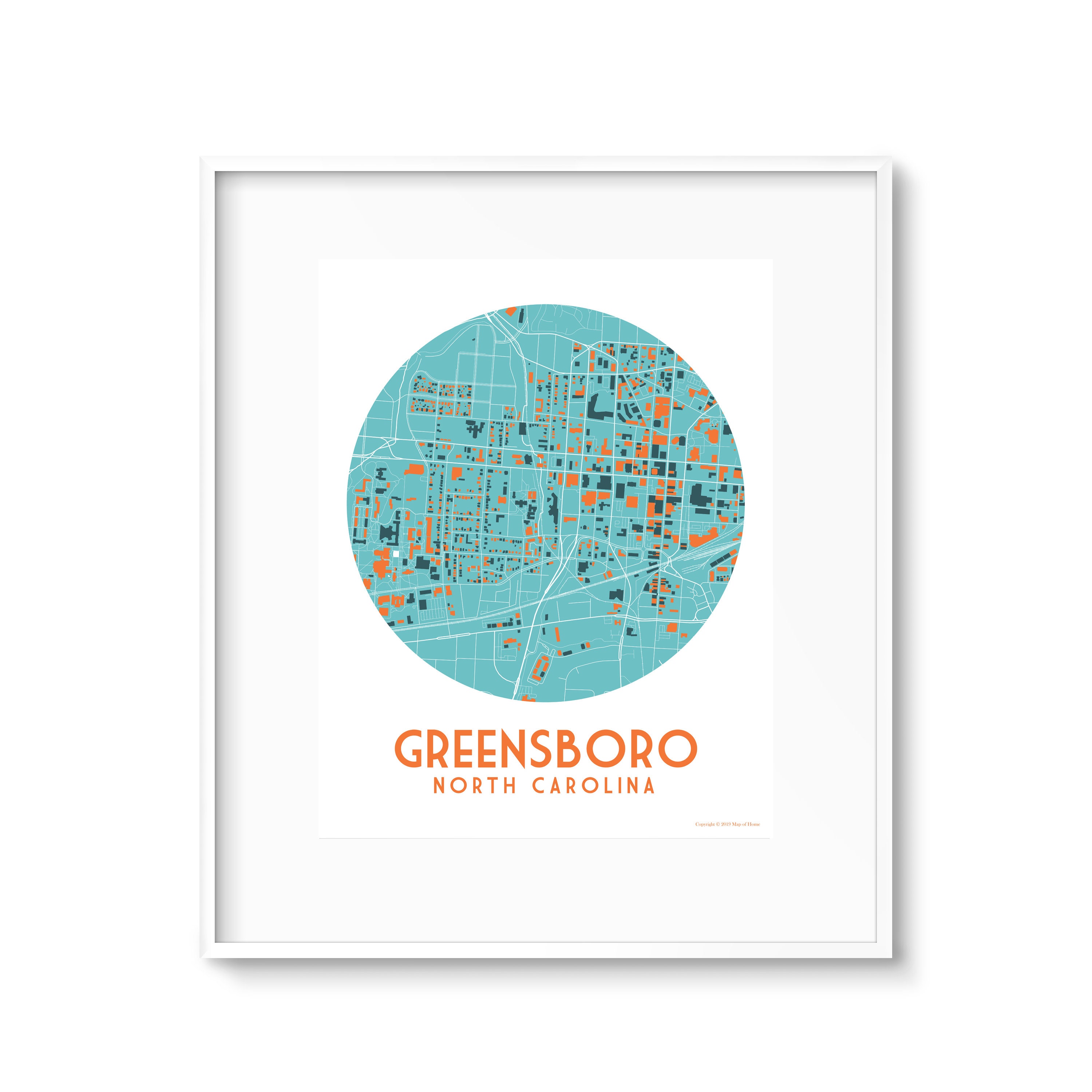 Greensboro North Carolina Map Art Wedding Housewarming Etsy